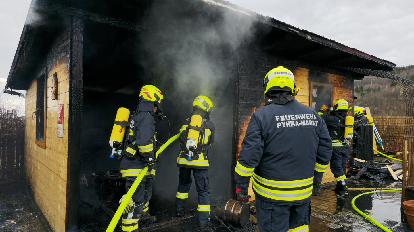 Gemeinsam konnten die vier Feuerwehren Pyhra-Markt, Pyhra-Perersdorf, Obertiefenbach und Wald ein Übergreifen der Flammen auf das Wohngebäude verhindern. Mehrere Atemschutztrupps konnten auch den Brand relativ rasch löschen.