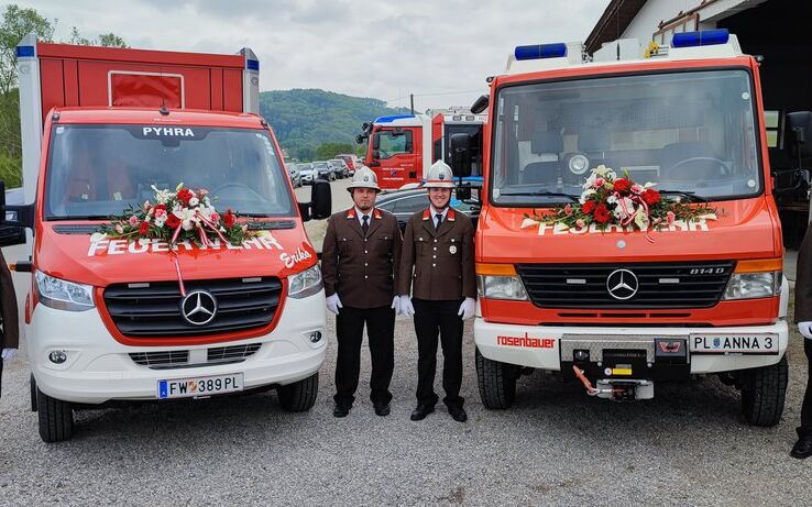 In der Feldmesse betonte Monsignore Markus Heinz das Motto "Anpacken und Vertrauen" wesentliche Merkmale des Feuerwehrwesens sind. Im Anschluss segnete er das neu aufbereitete Löschfahrzeug mit Allradantrieb der FF Pyhra-Perersdorf und das im Vorjahr in Dienst gestellte Versorgungsfahrzeug mit Allradantrieb der FF Pyhra-Markt.